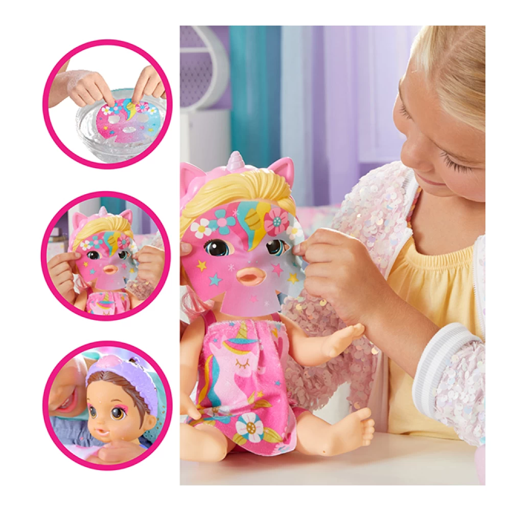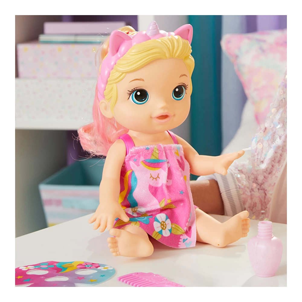 PLAY IN OR OUT OF THE WATER: Glam Spa Baby doll offers so many ways to play! After spa time, kids can help this 12.8-inch waterplay doll take a pretend swim and dry off with a cozy unicorn towel wrap