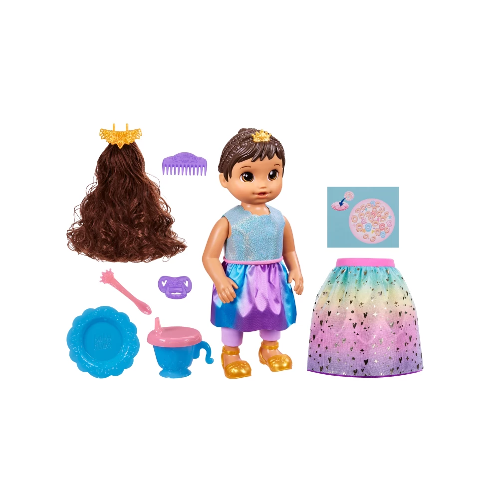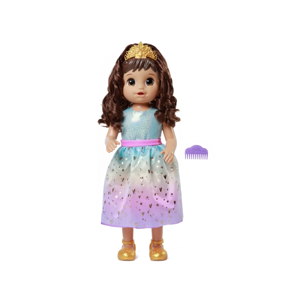Dress Up Doll Accessories And Tiara Hair Extension. Kids Ages 3 And Up Can Place Tiara On Baby Dolls Head And Style Her Brushable Hair. Complete The Royal Transformation With Her Shimmery Princess Skirt.