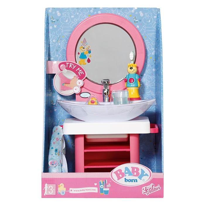 BABY born Bath Toothcare Spa with a wash basin with light and sound effects, toothbrush, tooth mug and towel.
