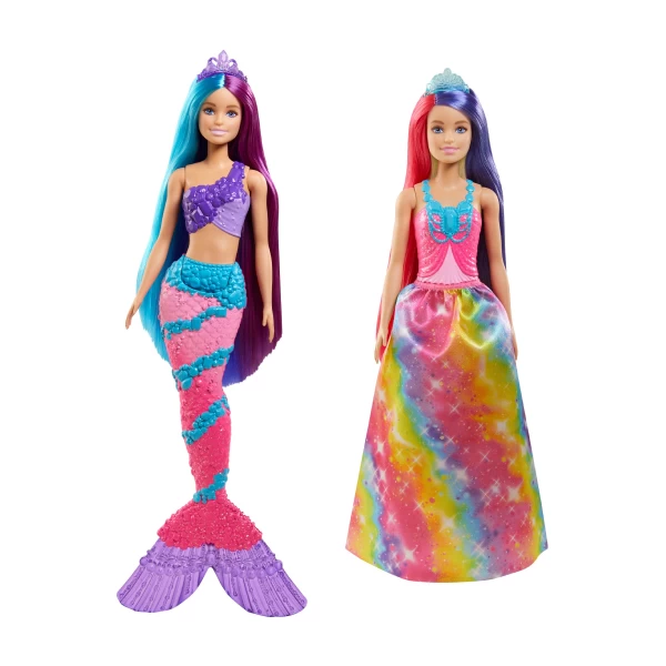 ​Choose from a Barbie princess doll with a sparkly bodice and a long rainbow princess skirt or a Barbie mermaid doll with a sea-inspired look and sparkling tail.