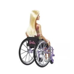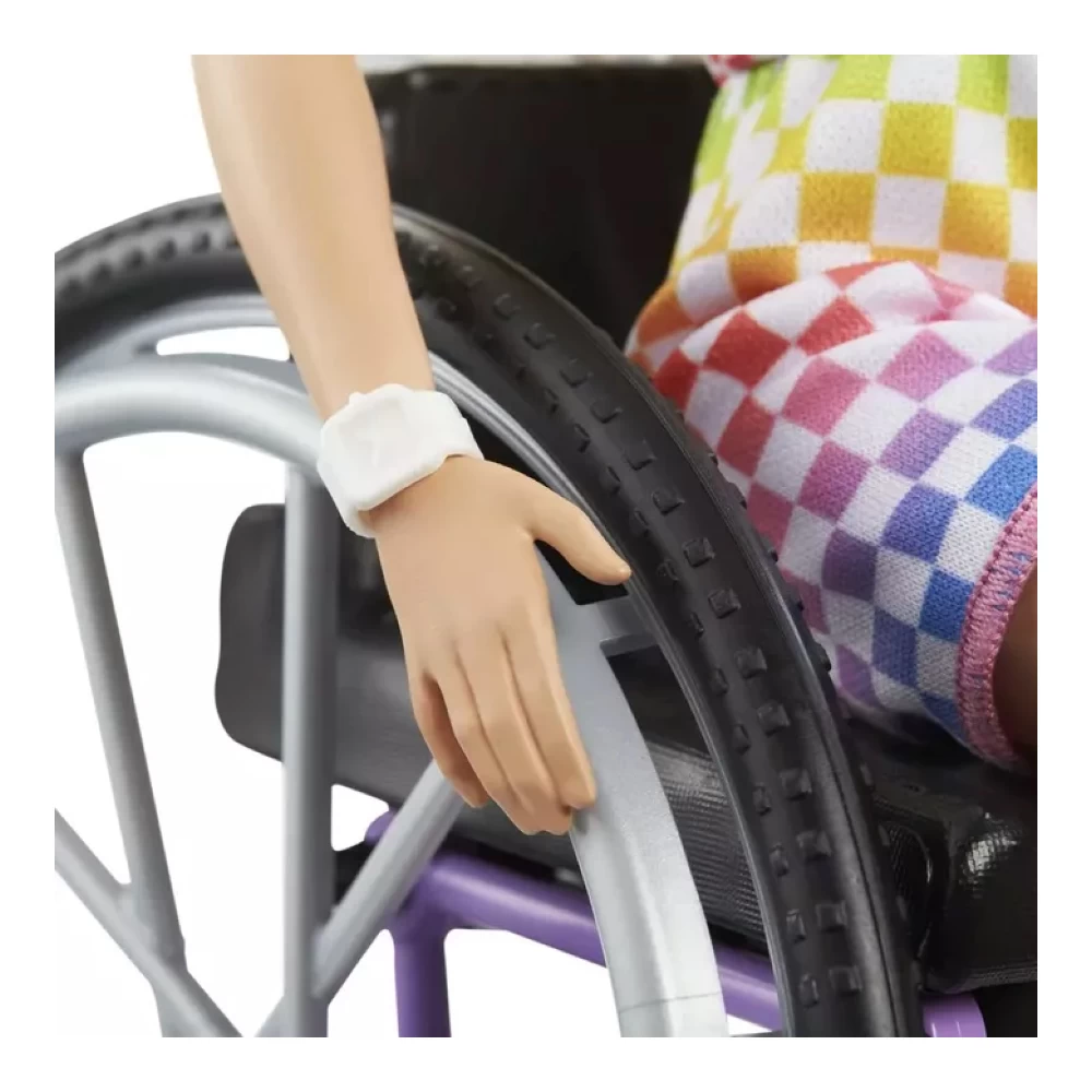 Barbie® doll sparks play potential with a manual purple wheelchair and a pink ramp that help her get easily in and out of the Barbie® Dreamhouse™ (sold separately, subject to availability).