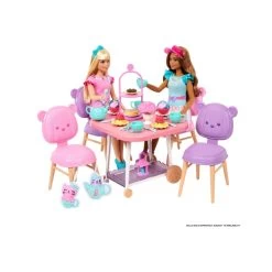 Includes 1 table with 4 chairs, 2 plush items and 18 accessories. BarbieĀ® dolls not included.