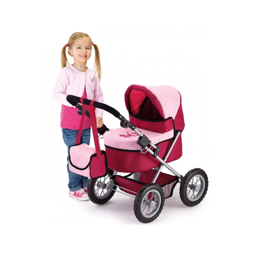 Trendy is a beautiful doll’s pram in a modern color and it is suitable for dolls up to 46cm. Thanks to the adjustable handle, this pram is already fitting for the smallest girls. Furthermore the pram can be folded up quickly for an easy transport. Conveniently, the integrated shopping basket can store everything, what is needed for a trip by the doll’s mum and her darling. Delivery in a beautiful showbox. Handle height (cm): 35-68