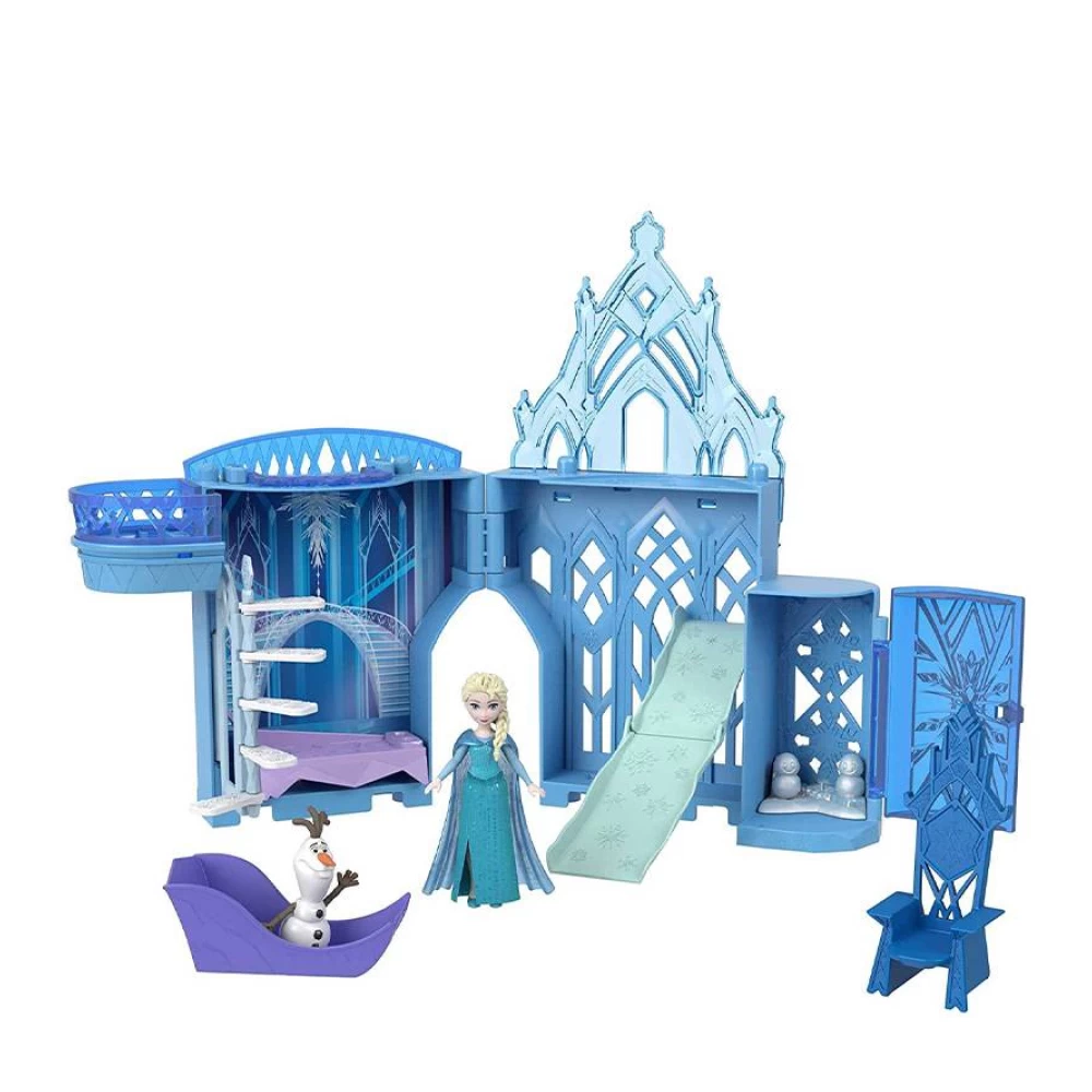Fans will be delighted with this signature castle playset, inspired by Disney’s Frozen movies! A doll house in charming small scale, this Elsa’s Ice Palace playset opens to reveal multiple play areas, plus an Elsa doll, Olaf figure, furniture and more. Playset includes a handle for on-the-go play and can connect with other Storytime Stackers to expand the kingdom. Each set sold separately, subject to availability. Dolls cannot stand alone. Colors and decorations may vary.