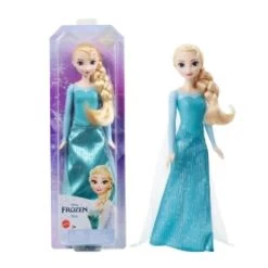 The doll faithfully reproduces the character from the animation and has long blonde hair braided in a braid and blue eyes. She is dressed in a classic outfit – a long turquoise dress and a cape.
