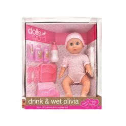 Pretty Olivia has sleeping eyes so she can snooze when lying down, and comes in her own pretty outfit and matching hat.