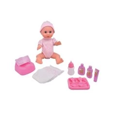 She can be dressed and undressed and her hat wonβt go missing as itβs fastened to her babygrow. She also comes with a velcro fastening nappy, potty and feeding bottle.