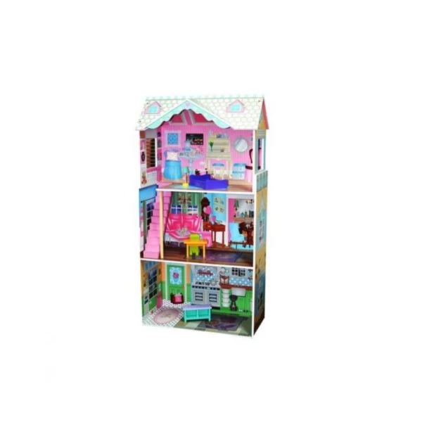 Wooden Emily’s Doll House, with 3 floors of fun , staircase between level 2 and level 3, 5 pieces of wooden furniture supplied , Barbie sized doll fits in Doll House, comes flat packed with plans and takes 45 minutes to build with a star screw driver is needed , enjoy loads of play value ahead Features Model emily Colour assorted.