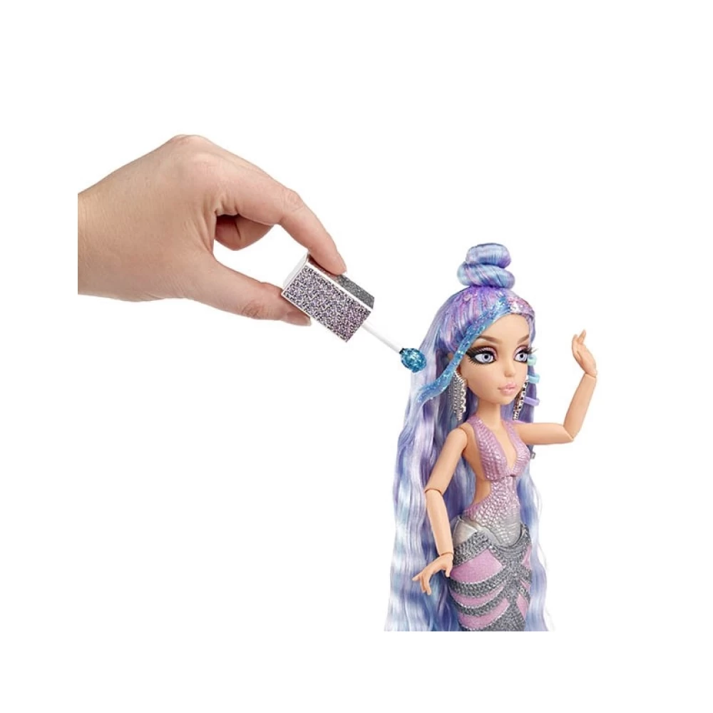 Each Mermaze Mermaidz doll has a unique; sculpted tail that performs a magical; dramatic color change when submerged in water.
