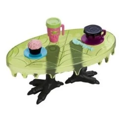 Monsters have plenty of space to sip “eye” milkshakes and dig into their “brain” cupcakes at the playset’s stylish high bar.