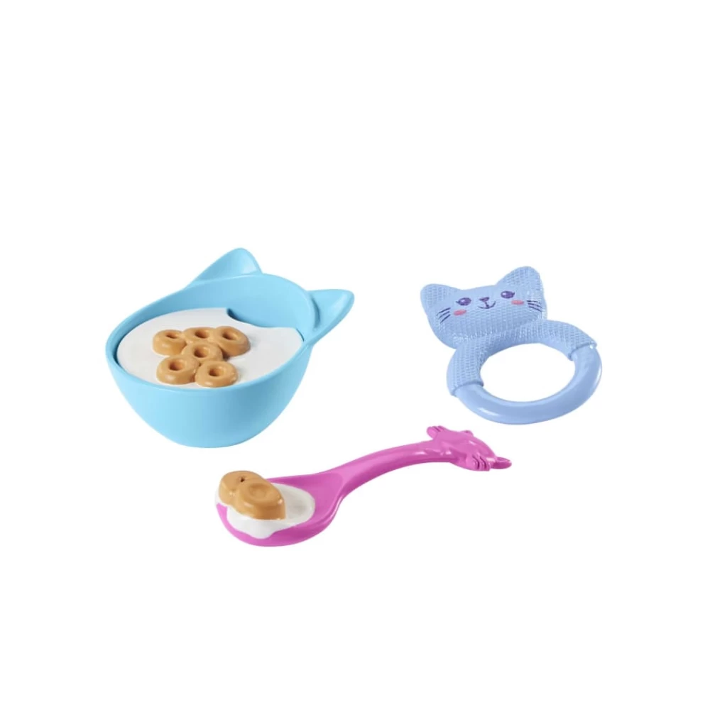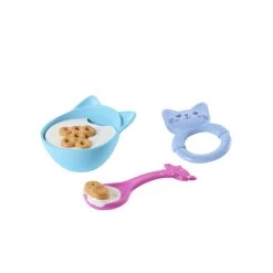 Feed the kitten baby with the bottle, spoon, and bowl for sounds like ‘slurp’ and ‘mmm’!