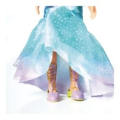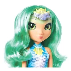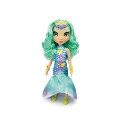 Beautiful Marinia comes to life with this 15” doll! Her extra-long nylon hair is crowned with her signature seashell headpiece. She wears a custom printed taffeta gown with a sparkly tulle ruffle, and is adorned with sea themed accessories right down to her removable PVC shoes.