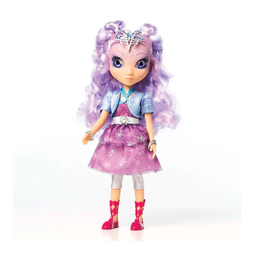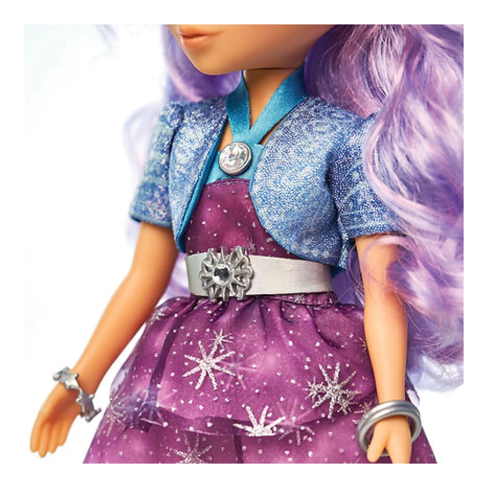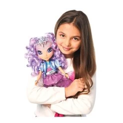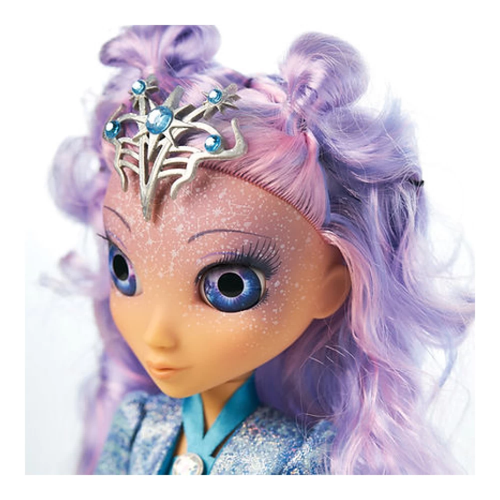 By popular demand from fans… introducing the highly anticipated Nebulia Doll! She stands 15″ tall and is wearing removable PVC shoes, silver shimmer leggings, custom printed purple organza halter top and skirt, and a deep blue bolero jacket. Other features include removable gem encrusted head piece, bracelets, and belt, our own custom eyes, and lush nylon hair.