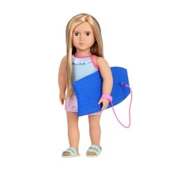 Surfing Adventures: explore beautiful waves and beachy fun with Our Generation doll Ivana!18-inch Doll: beautiful brown eyes that open and close, and long, brushable blonde hair thatโs fun to style!Easy to Play: cuddly soft body; neck, arms, and legs bend to easily change outfits and surf on her cute bodyboard!Includes: doll, heart-themed bodyboard with safety leash, swimsuit, tie-dye shorts, and a pair of sandals.Mix & Match: outfit is easy to put on and remove; compatible with most 18-inch dolls, outfits, and accessories.