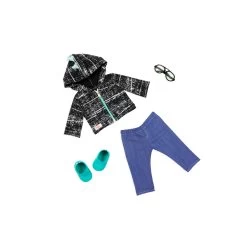 Stomp into fun and adventure with the Our Generation On A Rawrr outfit for 18-inch boy dolls! Transform your favorite doll buddy into a cool dino as you dress them in the zip-up hoodie. It features 3D dinosaur spikes along the hood for a unique and playful design! Complete the look with the denim-style pants and high-top sneakers. Then add the pair of sunglasses for extra bright days! Easy to put on and remove, this outfit is compatible with most 18-inch dolls.