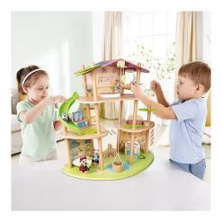 Sam, Pam and their panda family are passionate about green energy and want to share their knowledge! Come visit them in their beautiful bamboo house and learn all about clean energy and eco materials! The house features loads of accessories and even an elevator basket and slide!