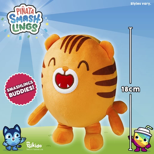 The Piñata Smashlings Plush Buddies are super cute and cuddly collectible soft toys, based on the Smashlings characters from the Roblox Game. Each Plush Buddy is 20cm tall and there are a few different styles to collect, including The Pink Unicorn Tutti Bell, The Green Dragon, or Tiger Jasper! Each Plush Buddy comes with a redeemable digital code for the Piñata Smashlings Roblox Game!