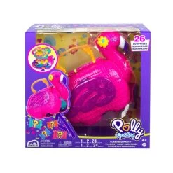 Get ready for tropical party fun with the Polly Pocket Flamingo Party playset! Shaped like an adorable flamingo, this larger-sized compact also has a handle for portable play. Pull the leg tabs and watch the colourful stream of confetti and 26 surprises fall from the playset. Some surprises are wrapped to save for later or to unwrap right away! Many surprises have a Pop & Swap feature that lets kids peg the pieces into different areas of the compact. The playset opens to reveal a fun tropical adventure with micro Margot and friend dolls.